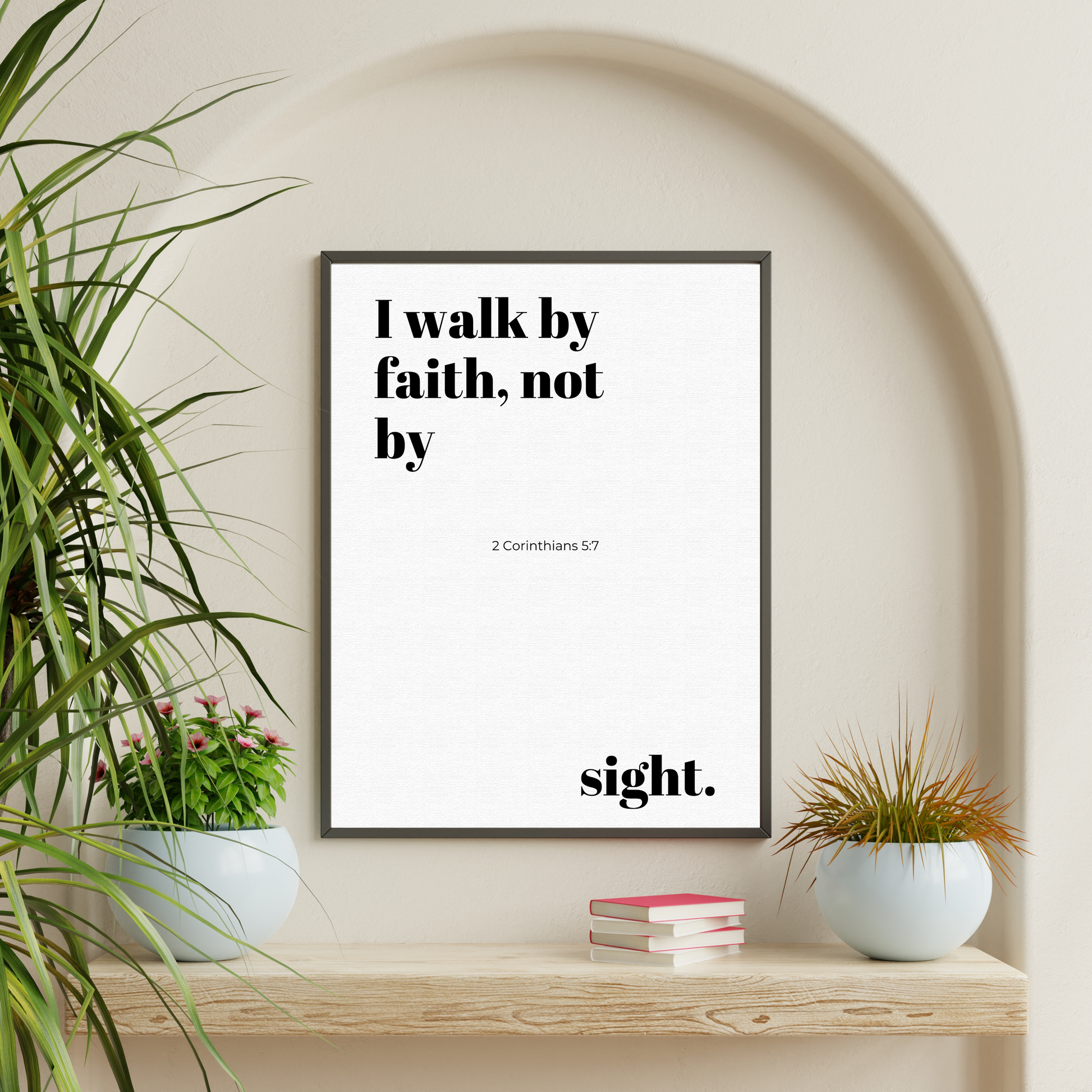 "I Walk by Faith, Not by Sight" poster, is a powerful reminder to trust in the unseen and believe in the journey ahead. Featuring elegant typography set against a white "minimalist," background, this piece of art is perfect for anyone seeking daily motivation and spiritual encouragement.